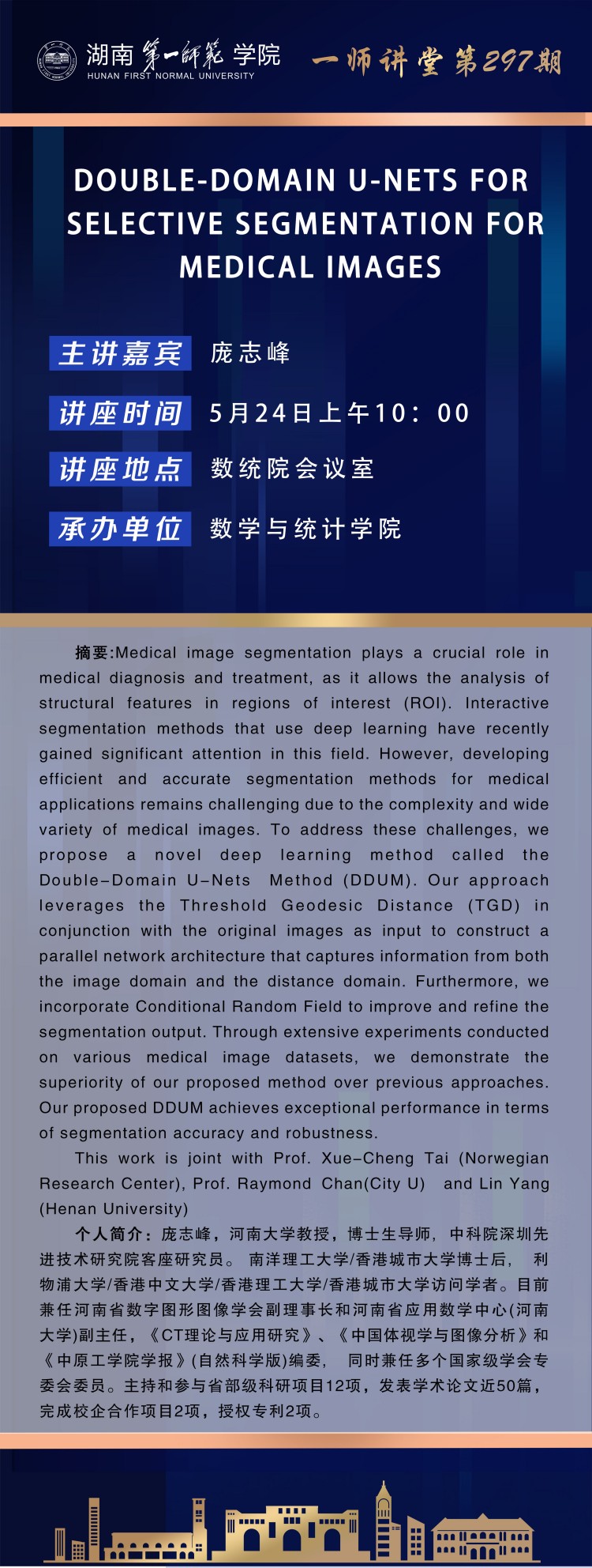 学术预告|一师讲堂第297期:DOUBLE-DOMAIN U-NETS FOR SELECTIVE SEGMENTATION FOR MEDICAL IMAGES