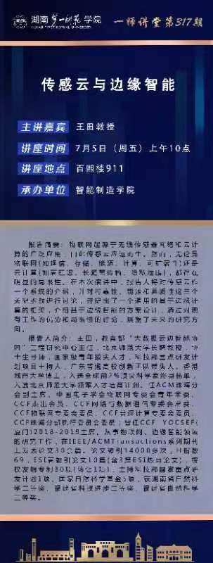学术预告|一师讲堂第317期:传感云与边缘智能