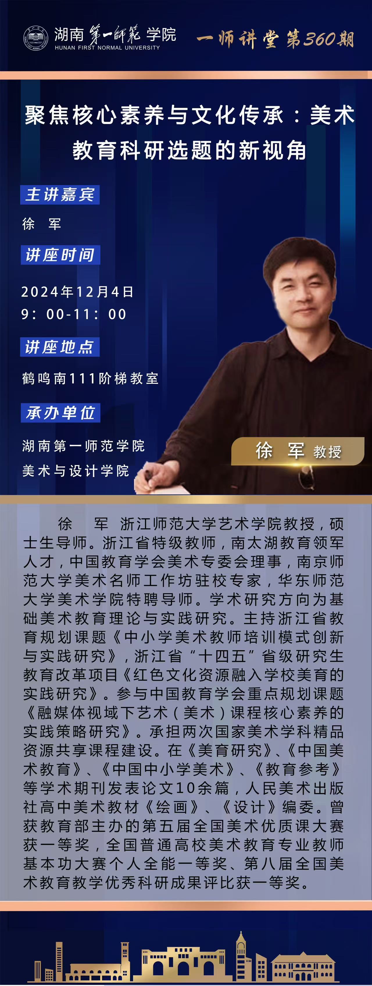 学术预告|一师讲堂第360期:聚焦核心素养与文化传承:美术教育科研选题的新视角