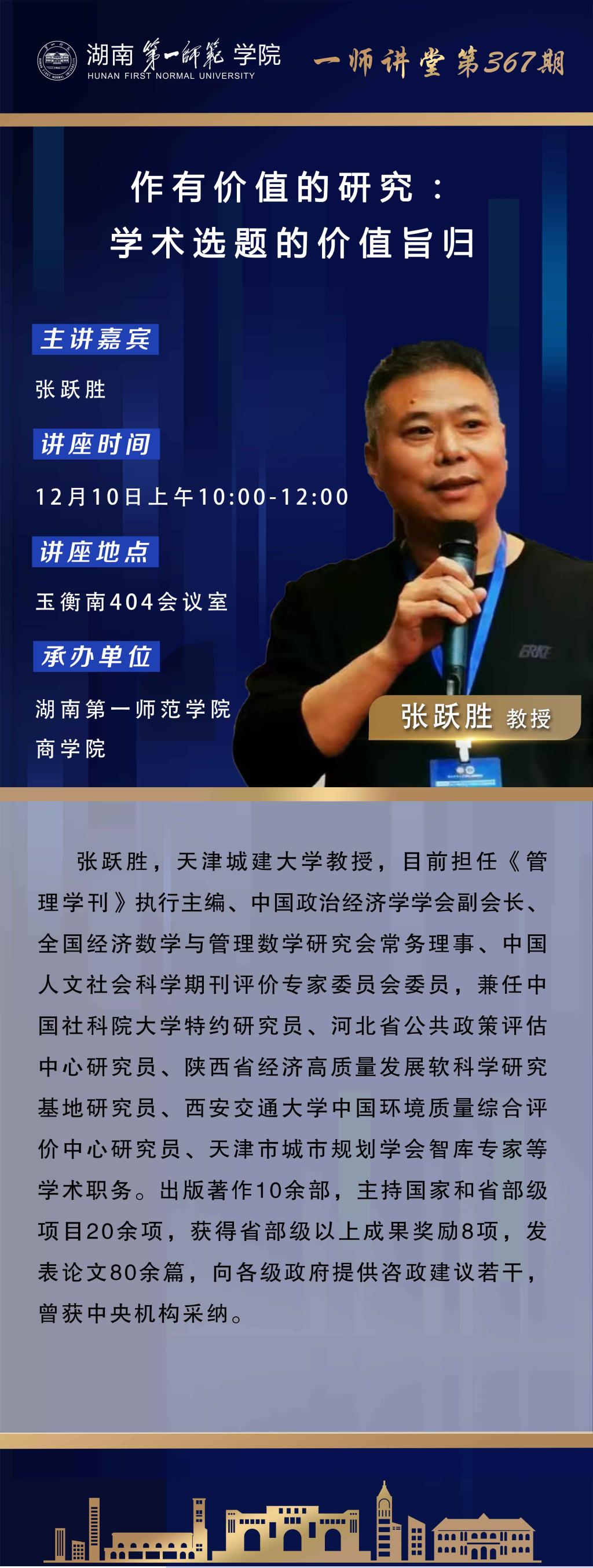 学术预告|一师讲堂第367期:作有价值的研究:学术选题的价值旨归
