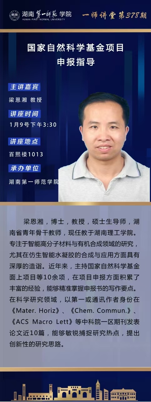 学术预告|一师讲堂第378期:国家自然科学基金项目申报指导