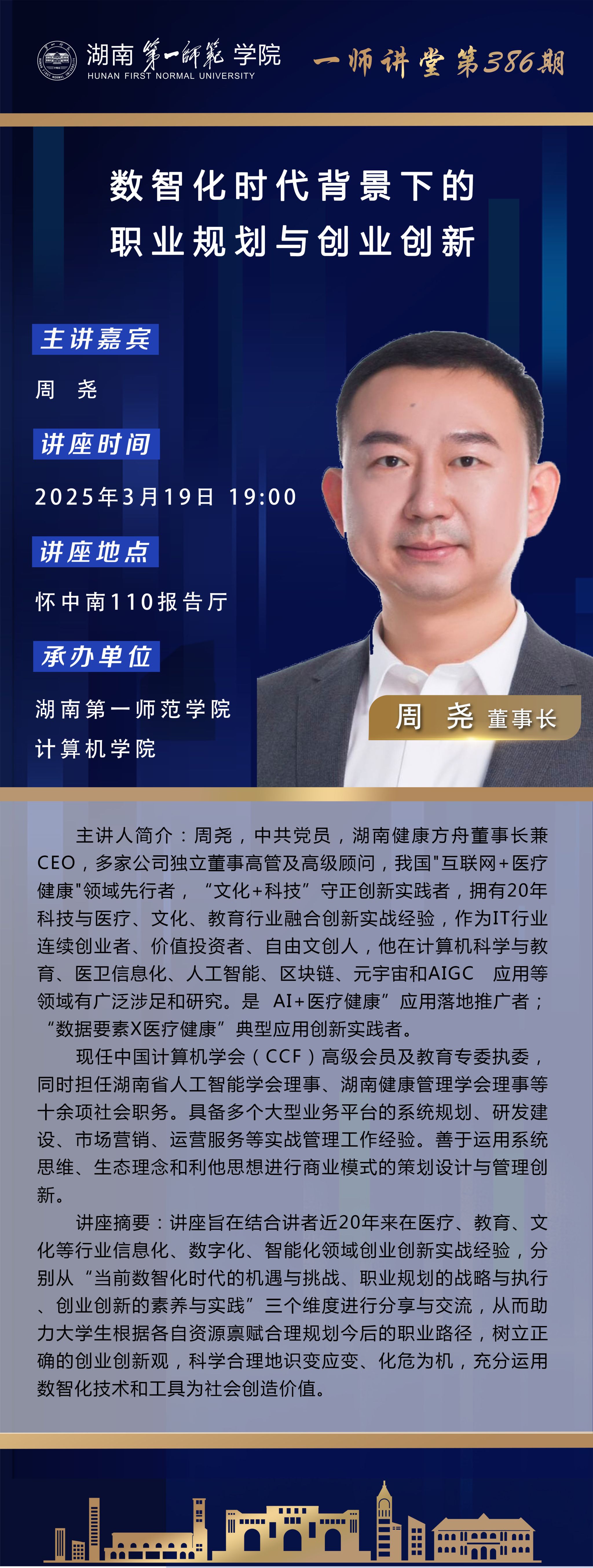 学术预告|一师讲堂第386期:数智化时代背景下的职业规划与创业创新