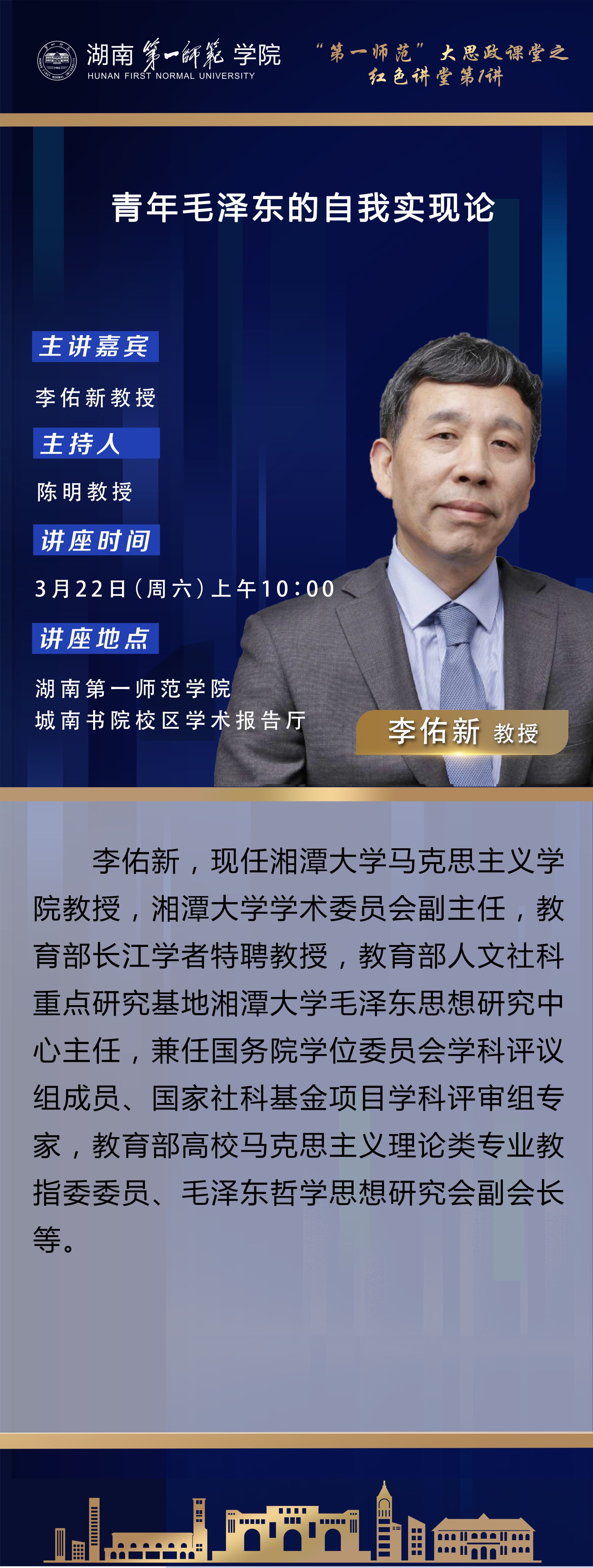 学术预告|“第一师范”大思政课堂之红色讲堂第1讲:青年毛泽东的自我实现论-87978797威尼斯