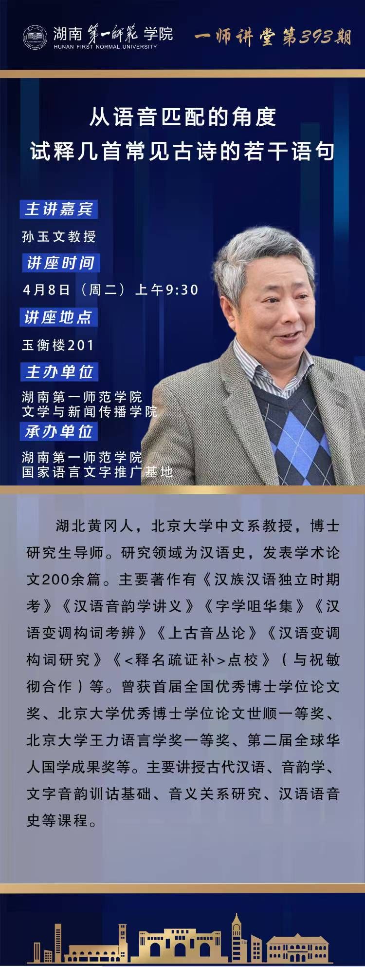 学术预告|一师讲堂第393期:从语音匹配的角度试释几首常见古诗的若干语句