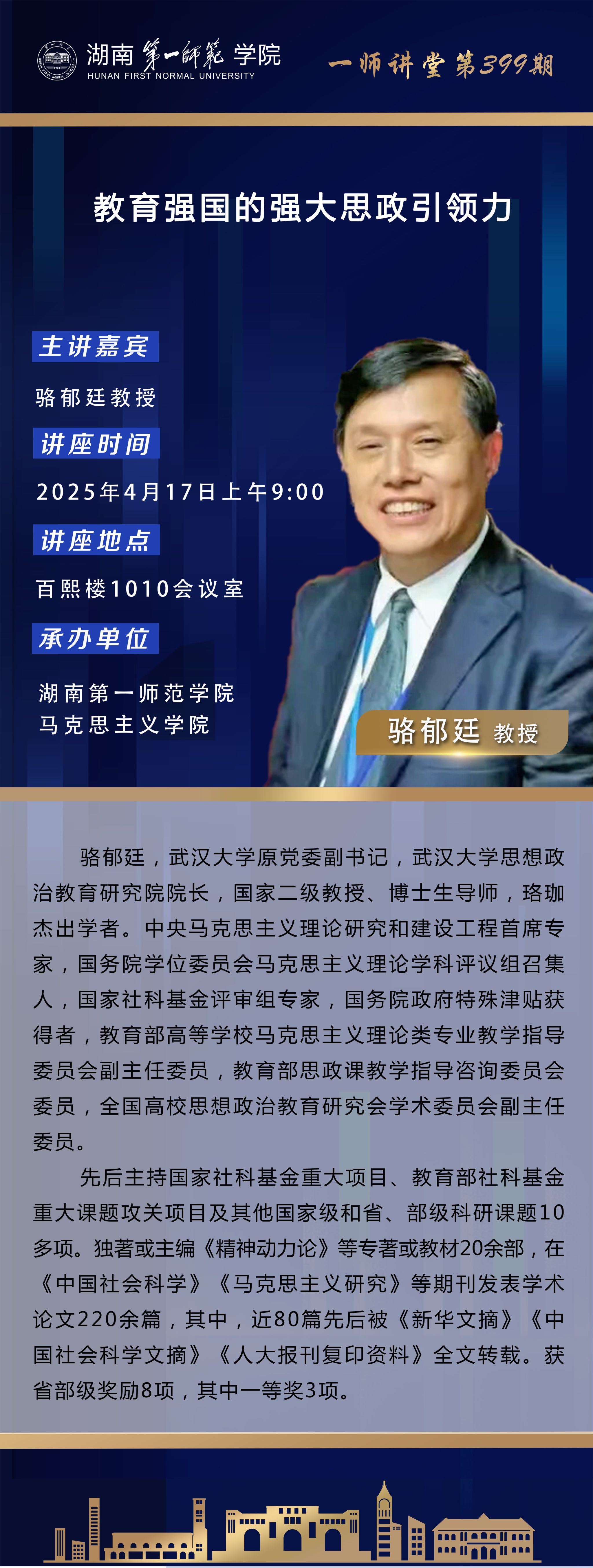 学术预告|一师讲堂第399期:教育强国的强大思政引领力