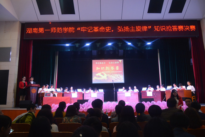 为庆祝建党95周年、红军长征胜利80周年,让青年大学生勿忘历史,继续弘扬伟大的长征精神,10月18日晚7点,我校在东方红校区科技楼实验剧场举行“牢记革命史,弘扬主旋律”知识抢答赛决赛。校党委副书记刘志敏、副校长刘鸿翔、副校长刘宇及宣传部、教务处、团委等相关部门负责人和部分二级学院领导、老师出席。