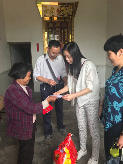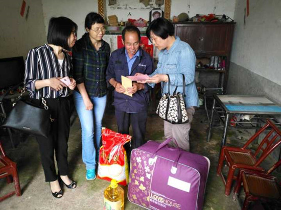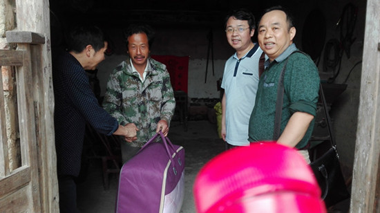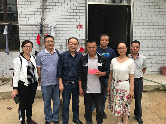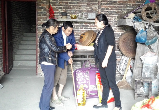 (数学与计算科学学院 供稿)6月6日,宣传部部长何文、数学与计算科学学院总支书记赵花云及党政办主任戴建宇、教育科学学院副院长刘丽群一行四人分别前往白泥村白燕组黄继光、碑头组王伏峰两户结对帮扶建卡贫困户家中,进行一进二访,精准扶贫。在70岁的黄继光老人家,何文一行,送去了米、油、被子慰问物资和2000元帮扶资金,并把本组的联系卡交到老人手中,告诉他有困难随时联系。在王伏峰家中,远远地看到老人坐在阶基尽头墙角下的轮椅上,一见到我们,他两眼热泪盈眶,他本是任劳任怨的好劳力、自尊心很强的老党员,因为去年中风丧失劳力致贫,突然的变故对他及其家庭打击很大。我们把2000元产业帮扶基金和我们的联系卡送给他,并为其家庭送来了慰问物资米、油、被子,鼓励他积极锻炼,争取能够早日生活自理。