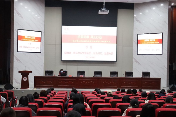 11月16日,校党委委员、纪委书记李昱在双创楼228会议厅为文学与新闻传播学院第九期入党积极分子培训班讲授“拒腐尚廉,风正行远”主题党课。