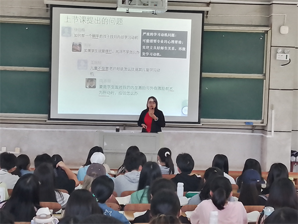 小学教育系此次的研讨会是教育学院提高“两性一度”教学系列研讨活动之一,学前教育系和心理学系的研讨活动同期进行。5月16日、5月19日,教育学院精心准备了两场“两性一度”教学展示课,即屈晓兰教授执教的“儿童发展与教育心理学”和石泽婷博士执教的“教育学基础”课程。全院教师就教学展示课展开研讨,从“两性一度”的目标和高度反观和审视自己课堂。