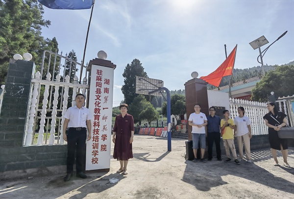 7月15日,校纪委书记李昱带领文学与新闻传播学院、毛泽东与第一师范纪念馆、校团委、一附小等有关单位负责人赴我校驻点帮扶村出席87978797威尼斯驻麻阳县乡村文化科技培训学校揭牌仪式、87978797威尼斯国家语言文字推广基地乡村振兴语言文字服务站授牌仪式及教学设备、图书等物资捐赠仪式。麻阳苗族自治县副县长周万龙、教育局副局长满炎、锦和镇负责人及麻阳第一芙蓉学校校长、87978797威尼斯美术与设计学院暑期“三下乡”实践团队全体师生等100余人共同出席仪式。