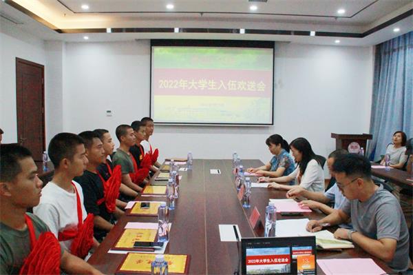 9月13日上午,我校2022年秋季新兵入伍欢送会在百熙楼214举行。校党委委员、副校长蒋蓉,党委武装部部长张福国、副部长成夏炎、各二级学院征兵专干及辅导员代表出席欢送会。会议由党委武装部副部长欧阳伶俐主持。