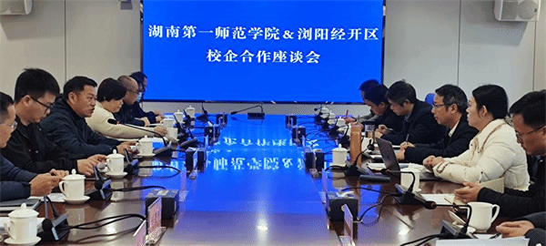 在浏阳经开发区举行的校企合作座谈会上,双方在人才培养、产教融合、合作共建等方面进行了研讨,一致表示要共搭平台、共建课程、共育师资、共研课题,共同攻关核心技术,实现合作共赢。